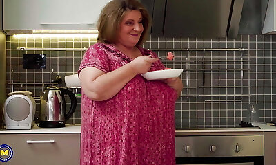 مرحله مادربزرگ با پستان های بزرگ و گربه برای تولد من