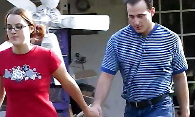 Barely 18 slut in specs blows pop's big stiff cock then gets jism in pinkish pussy