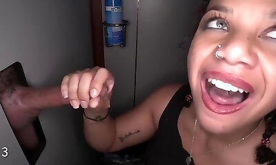 White girl visits a gloryhole and fucks a ginormous black cock