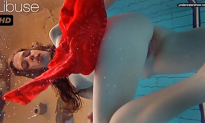 Two sexy teens swimming in the pool like handsome mermaids