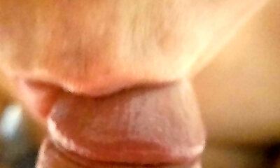Spunk in Mouth Close-Up - MILF Slut Gives Blowjob with Cumshot in Hatch
