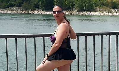 Shy and nervous gf with big tits in a lil' bikini displays in