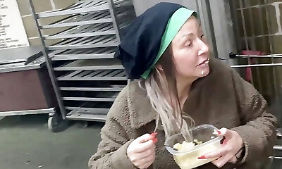 Obscene alone chick flashes her petite tits and pisses a bit into a huge bowl